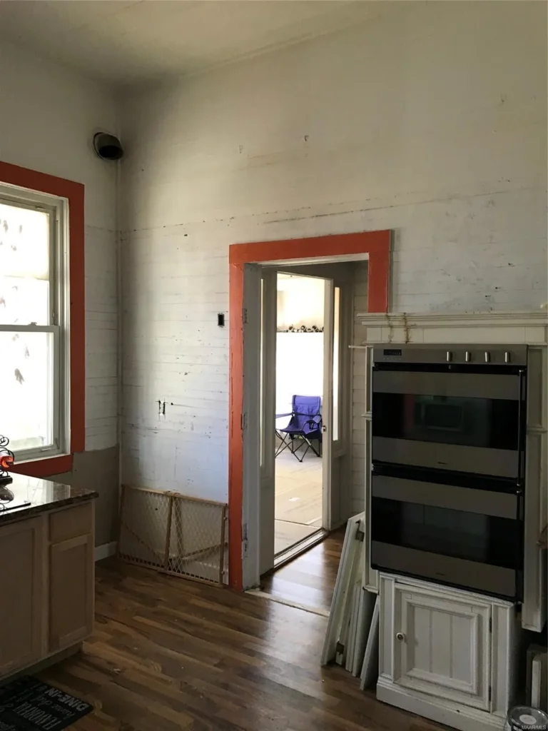 The kitchen area is ready for a full renovation, offering the perfect blank slate for a modern chef’s kitchen with historical accents.