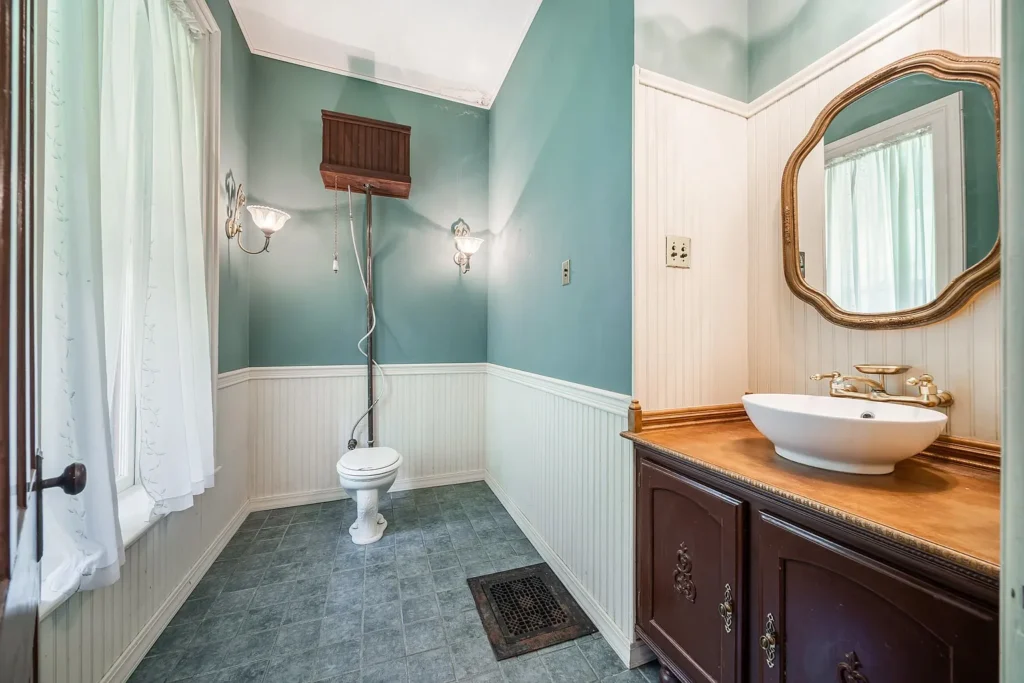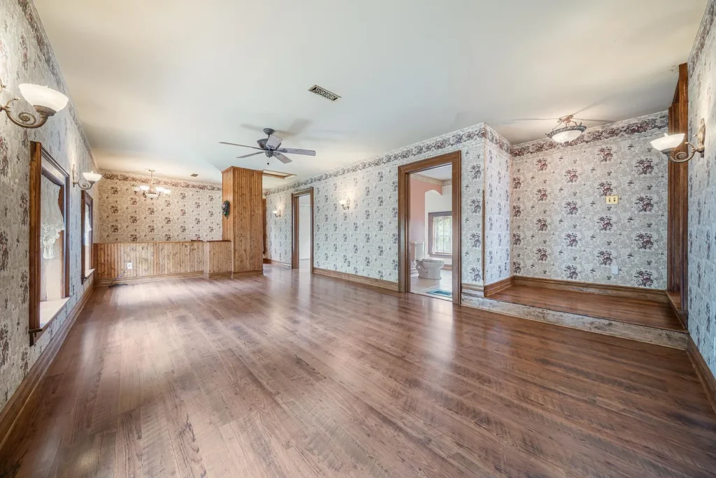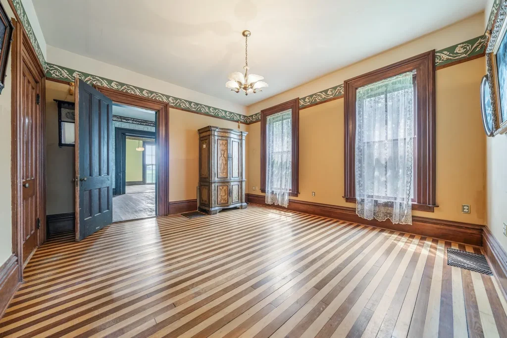 The recently renovated sections are a stunning showcase of the home’s potential, where the original woodwork has been lovingly restored, and the soaring ceilings and large windows create spaces filled with incredible light.