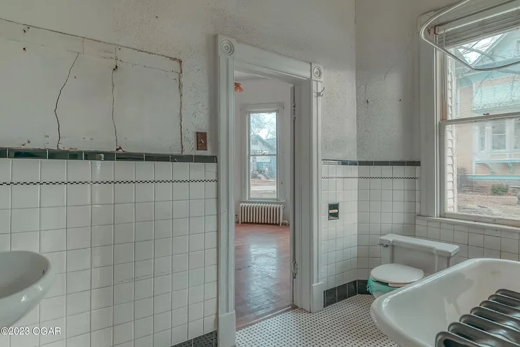 Each room is filled with natural light and boasts period details such as transom windows, vintage hardware, and solid wood floors. The bathrooms, though modest, carry hints of the home’s original fixtures and offer ample opportunity for tasteful restoration.