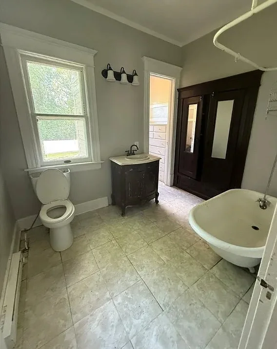 Upstairs, the three bedrooms offer comfortable living spaces, each with large windows and plenty of closet space. The full bath includes a classic claw foot tub a detail that ties in beautifully with the home’s vintage appeal.